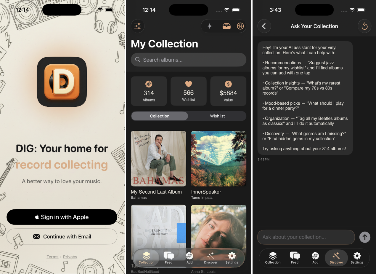 “I made DIG—short for ‘Discover In Grooves’—after taking Every’s Claude Code for Beginners course. I had zero coding experience, but I started building anyway. I’m a vinyl record collector, and I’ve always been frustrated by how fragmented the experience is—new releases scattered across subreddits, blogs, Instagram, disconnected tools. DIG is my attempt to fix that: one hub for discovery, tracking, collecting, and a social layer, with Claude-powered features that don’t exist yet.