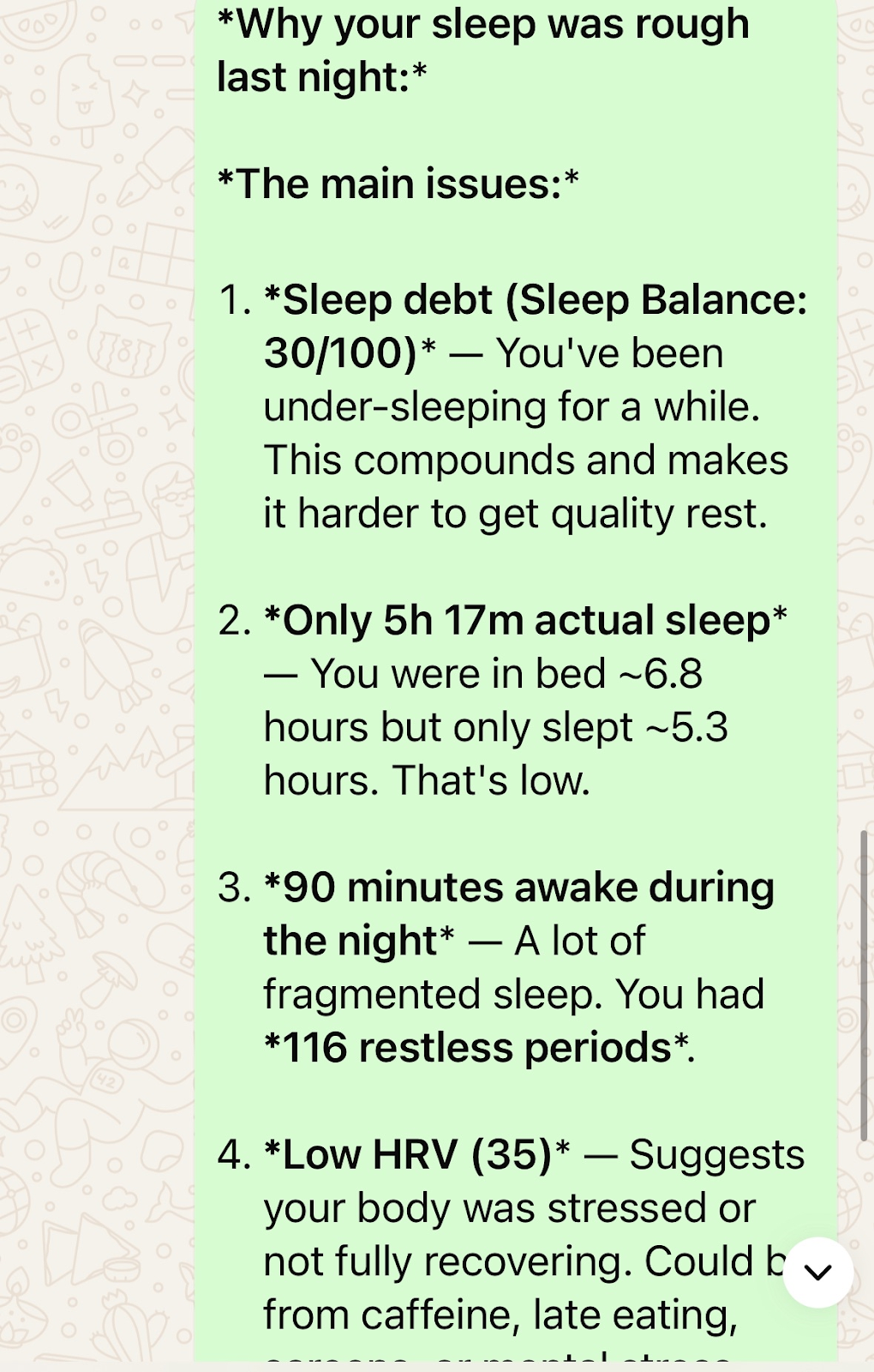 “I got lazy with my Oura app because it required me to log in and track my activity, and I stopped caring. The advice was generic—like ‘Sleep more.’ Yes, I know I need to sleep more. I wanted something more personalized: When should I start winding down? When should I do deep, focused work given how I’d slept? It was one-dimensional.
