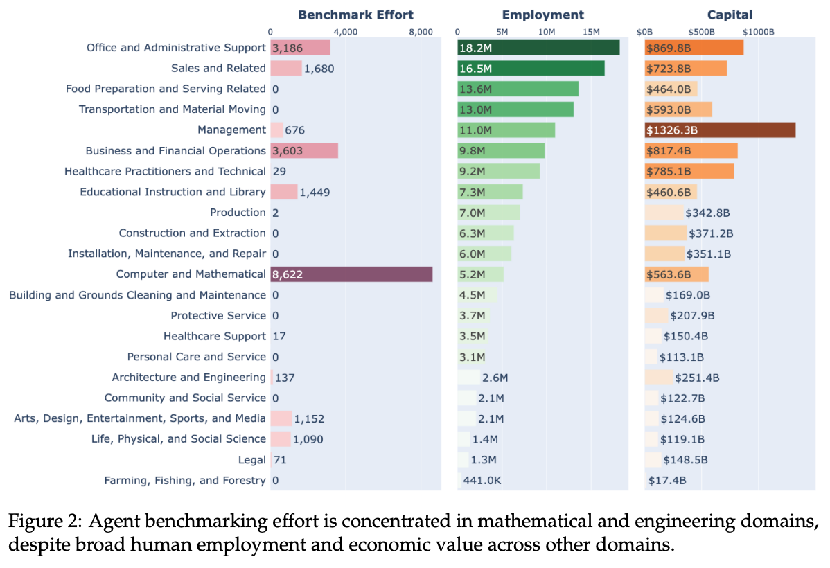 We currently have many benchmarks to measure computer and math performance, which does not reflect the distribution of jobs in the real economy. (Source: Carnegie Mellon and Stanford researchers.)